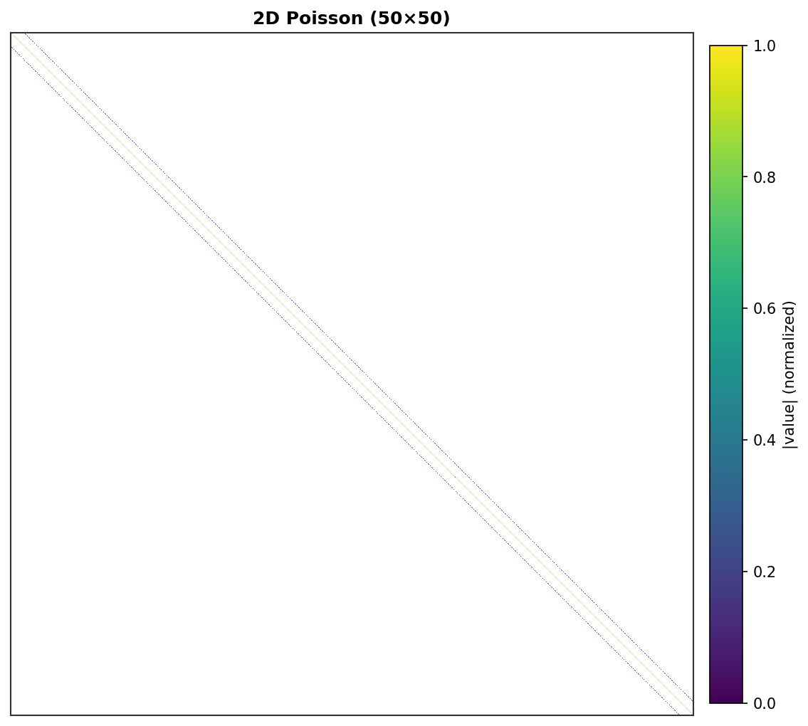 2D Poisson (50×50) - 2,500 DOF, band structure visible¶ |