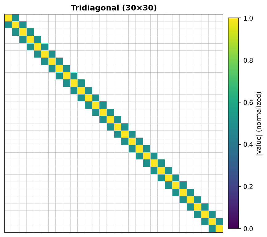 三对角矩阵 (30×30) - 经典1D Poisson模式¶ |